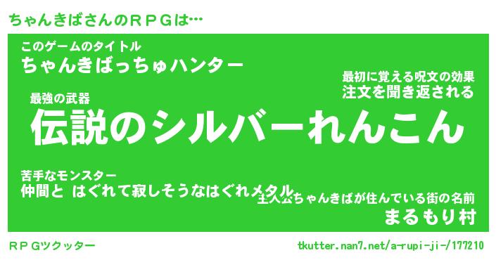 | 男性向けラノベタイトル風あだ名 | 『ちゃんきばの憂鬱』 |
