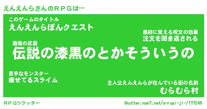 | 男性向けラノベタイトル風あだ名 | 『えんえんらの憂鬱』 |