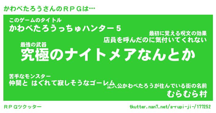 | 胡散臭い通販商品みたいなあだ名 | 『モテモテ間違いなし霊験あらたかなお札…その名も「かわべたろう」』 |