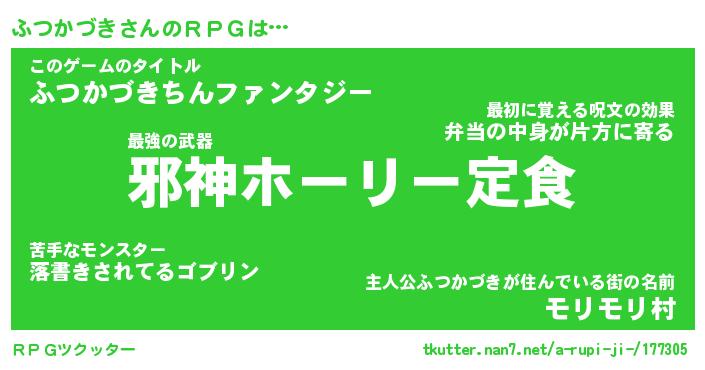 | ファンタジー風あだ名 | 『フツフェル』『エターナルフツカヅキー』 |