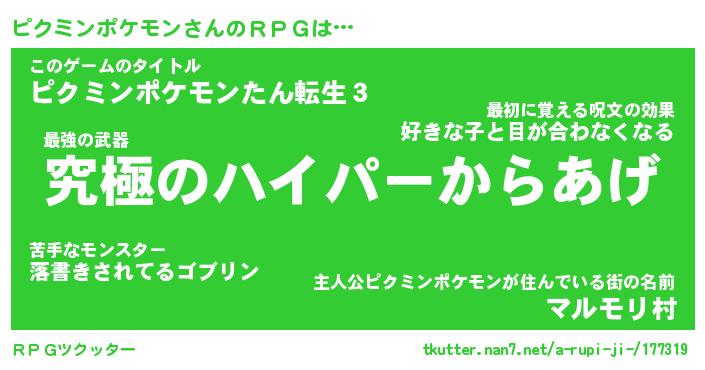 | 男性向けラノベタイトル風あだ名 | 『ピクミンポケモンアートオンライン』 |