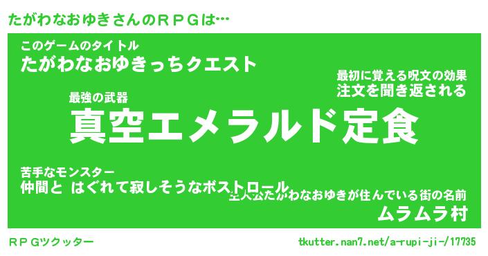 | 肩書あだ名 | 『たがわなおゆき御曹司』 |