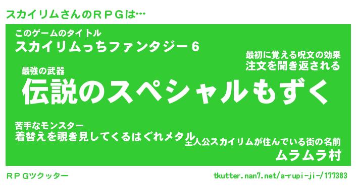 | 男性向けラノベタイトル風あだ名 | 『スカイリムの憂鬱』 |