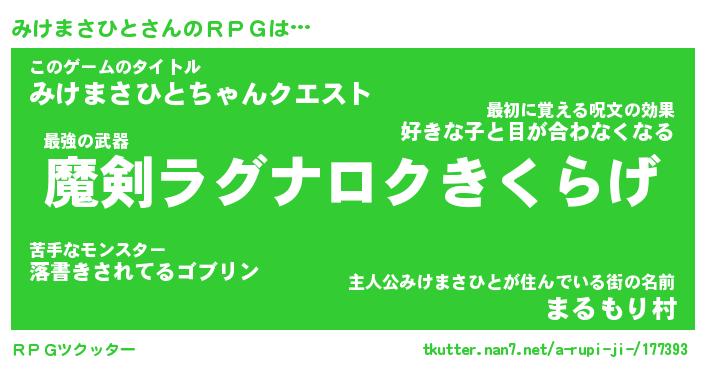| 胡散臭い通販商品みたいなあだ名 | 『必ず成功するブレスレット…その名も「みけまさひと」』 |