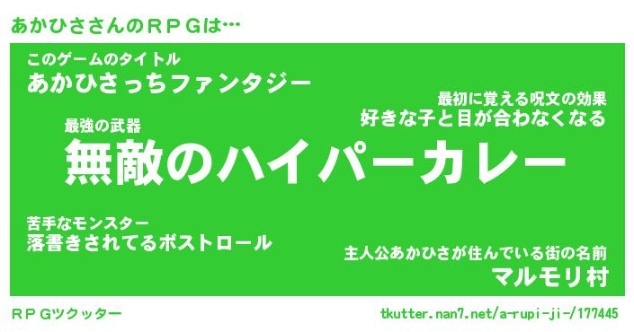 | 伝説のあだ名 | 『封印されし竜騎士あかひさ』 |