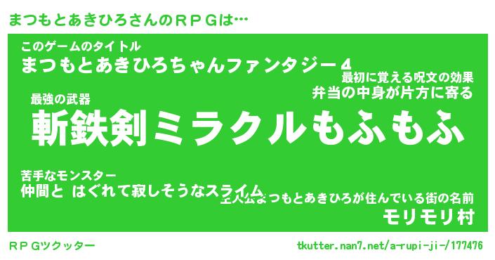 | 伝説のあだ名 | 『伝説の竜騎士まつもとあきひろ』 |