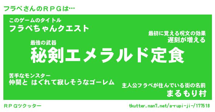 | 男性向けラノベタイトル風あだ名 | 『フラペの憂鬱』 |