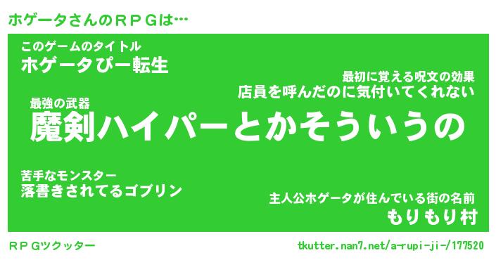 | ファンタジー風あだ名 | 『ホゲフェル』『エターナルホゲーター』 |