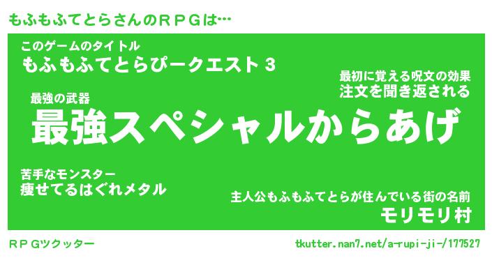 | ヘコむあだ名 | 『もふにー』『酢こんぶ』『もふお』 |