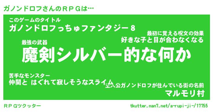 | 男性向けラノベタイトル風あだ名 | 『ガノンドロフの憂鬱』 |