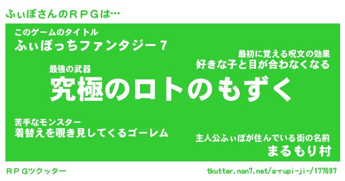 | 男性向けラノベタイトル風あだ名 | 『ふぃぼの憂鬱』 |