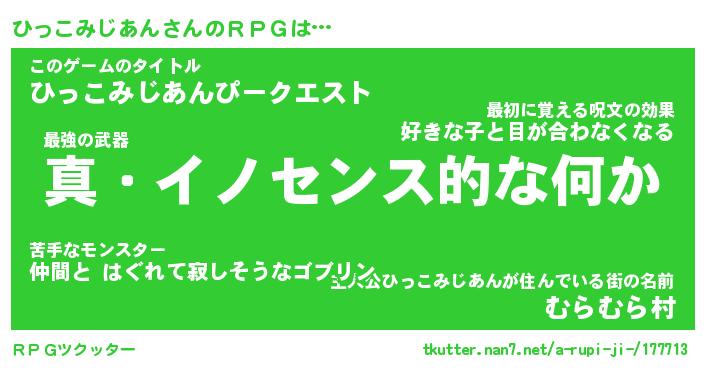 | 伝説のあだ名 | 『封印されしスナイパーひっこみじあん』 |
