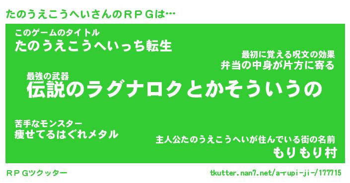 男性向けラノベタイトル風あだ名 | 『たのうえこうへいの憂鬱』 |