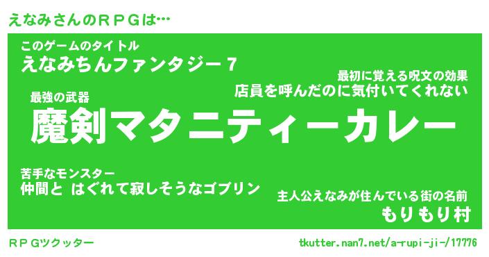 | 胡散臭い通販商品みたいなあだ名 | 『必ず成功する霊験あらたかなお札…その名も「えなみ」』 |