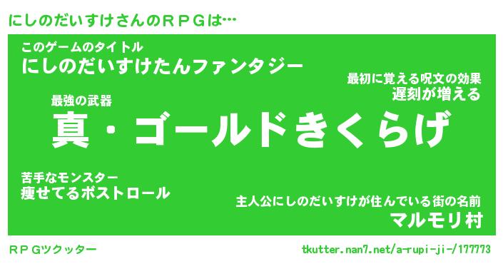 | ファンタジー風あだ名 | 『ニシフェル』『ファントムニシス』 |