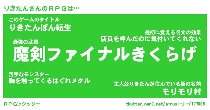 | ファンタジー風あだ名 | 『リキフェル』『エターナルリキタンー』 |