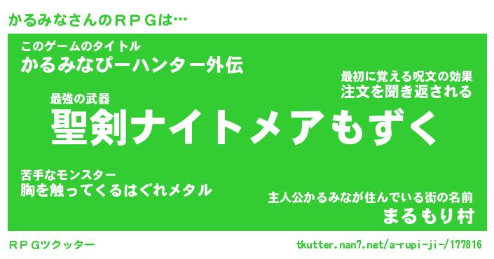 | 胡散臭い通販商品みたいなあだ名 | 『必ず成功する霊験あらたかなお札…その名も「かるみな」』 |
