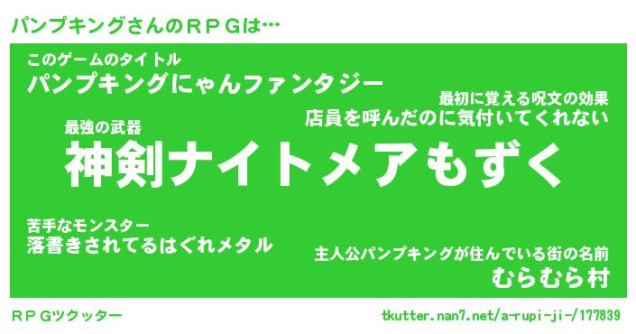 | 男性向けラノベタイトル風あだ名 | 『パンプキングの憂鬱』 |