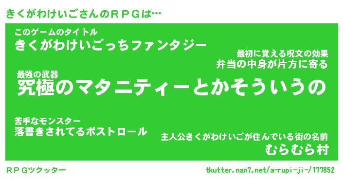 | 胡散臭い通販商品みたいなあだ名 | 『モテモテ間違いなし霊験あらたかなお札…その名も「きくがわけいご」』 |