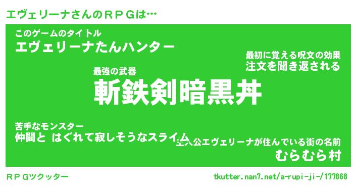 | 男性向けラノベタイトル風あだ名 | 『エヴェリーナの憂鬱』 |