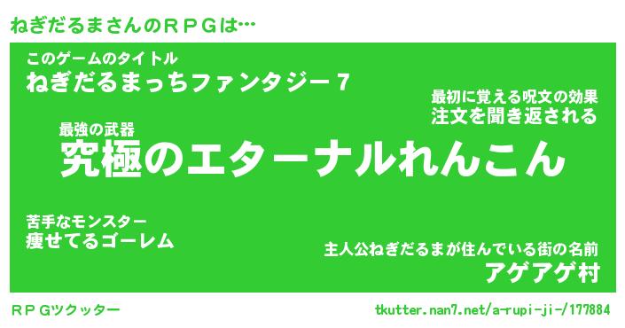 | ファンタジー風あだ名 | 『ネギフェル』『エターナルネギダルマー』 |