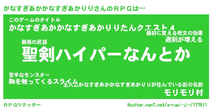 | 番長 | かなすぎあかかなすぎあかりり、またの名を・・・!『なんちゃってかなすぎあかかなすぎあかりりちん』 |