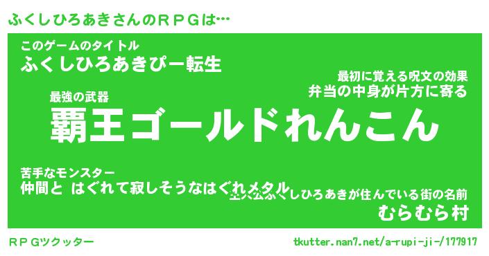 | 伝説のあだ名 | 『封印されしスナイパーふくしひろあき』 |