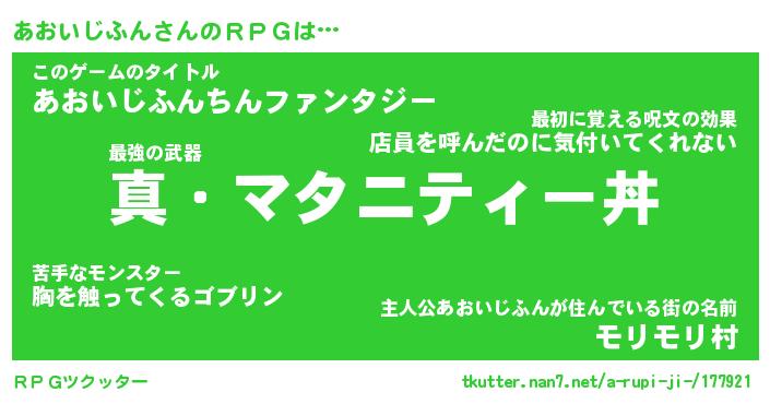 | 胡散臭い通販商品みたいなあだ名 | 『億万長者になれる霊験あらたかなお札…その名も「あおいじふん」』 |