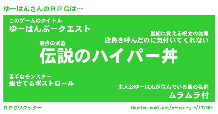 | 男性向けラノベタイトル風あだ名 | 『ゆーはんの憂鬱』 |