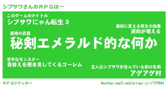 | 男性向けラノベタイトル風あだ名 | 『シブサワの憂鬱』 |