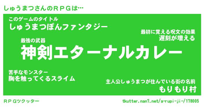 | ファンタジー風あだ名 | 『シュフェル』『エターナルシュウマツー』 |