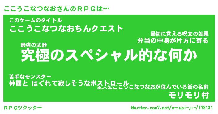 | 料理風あだ名 | 『節約★ここうこなつなおと油揚げの玉子丼』 |