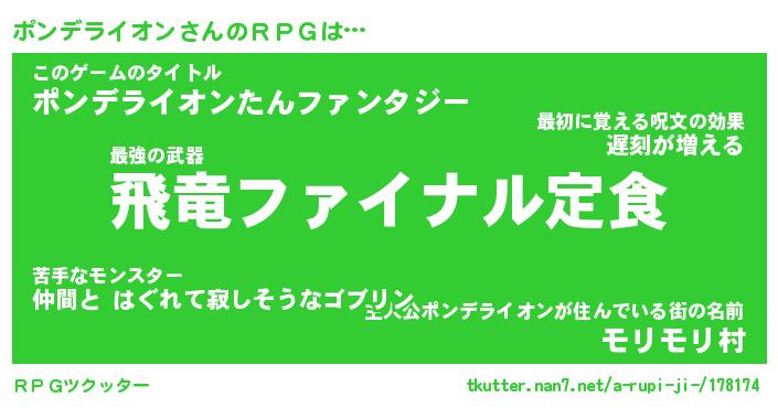 | 伝説のあだ名 | 『封印されし竜騎士ポンデライオン』 |