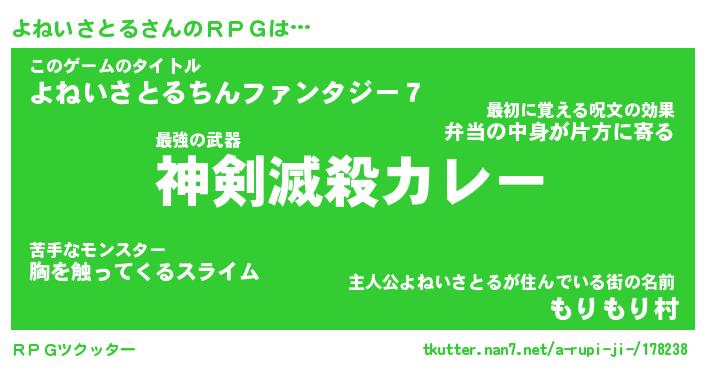 | 料理風あだ名 | 『節約★よねいさとると油揚げの玉子丼』 |