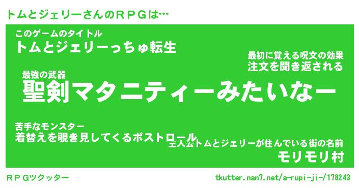 | 胡散臭い通販商品みたいなあだ名 | 『必ず成功する霊験あらたかなお札…その名も「トムとジェリー」』 |