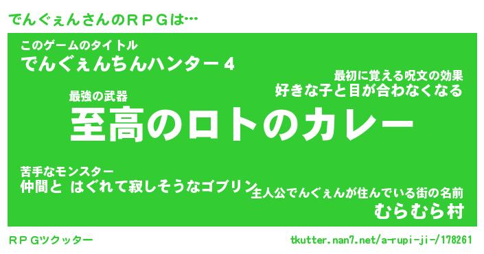 | ヒーロー風カッコイイあだ名 | 『スーパーデングェン』『幻影騎士デン』 |