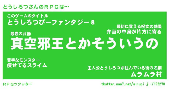 | 胡散臭い通販商品みたいなあだ名 | 『億万長者になれる水晶球…その名も「とうしろつ」』 |