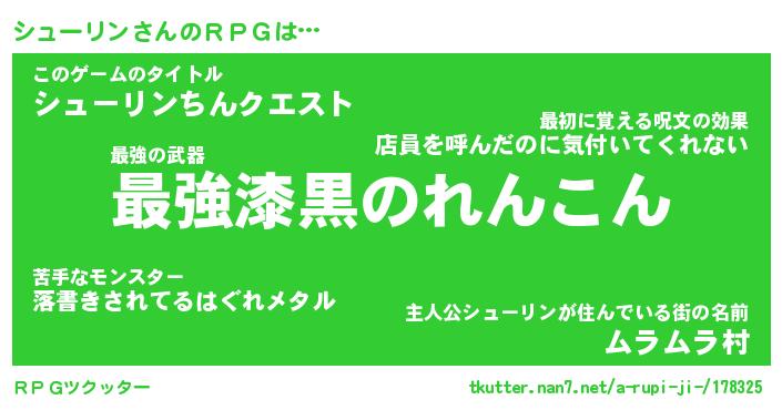 | 男性向けラノベタイトル風あだ名 | 『シューリンアートオンライン』 |