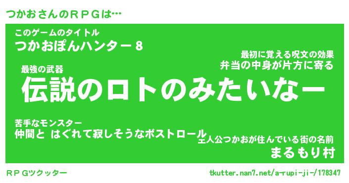 | 男性向けラノベタイトル風あだ名 | 『つかおの憂鬱』 |
