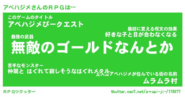 | 男性向けラノベタイトル風あだ名 | 『アベハジメアートオンライン』 |