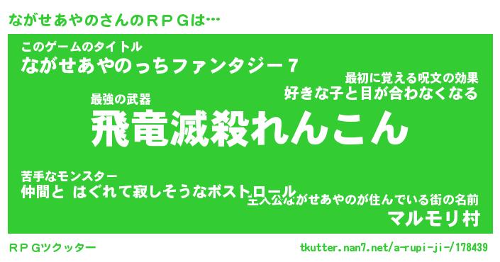 | 伝説のあだ名 | 『封印されしスナイパーながせあやの』 |