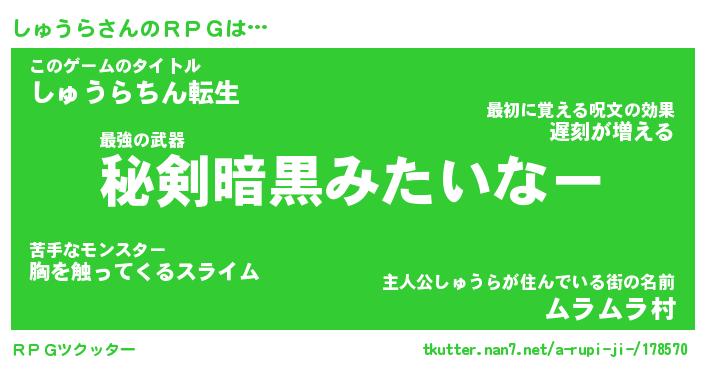 | ヘコむあだ名 | 『しゅにゅー』『豆乳』『しゅ太郎』 |