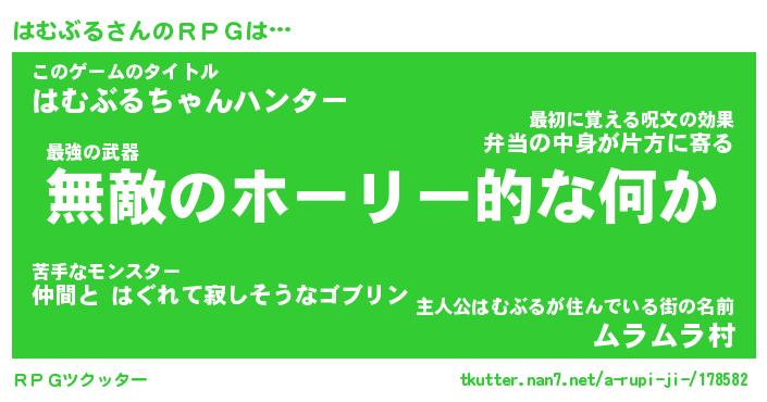 | 男性向けラノベタイトル風あだ名 | 『ハムブルアートオンライン』 |