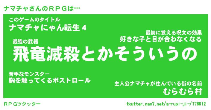 | ファンタジー風あだ名 | 『ナマフェル』『エターナルナマチャー』 |