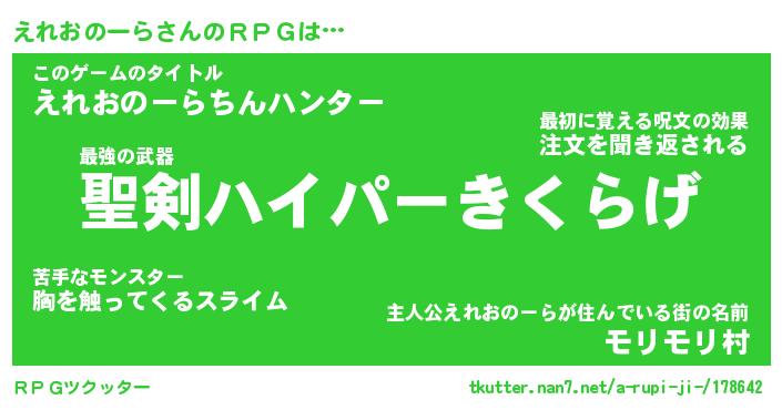 | 男性向けラノベタイトル風あだ名 | 『えれおのーらの憂鬱』 |