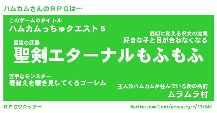 | ポケモン風あだ名 | 『ハムチュウ』『ハムカダネ』 |