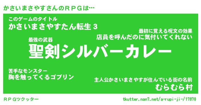 | 伝説のあだ名 | 『伝説の傭兵かさいまさやす』 |