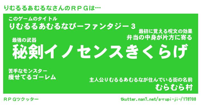| 胡散臭い通販商品みたいなあだ名 | 『必ず成功する霊験あらたかなお札…その名も「りむるるあむるな」』 |