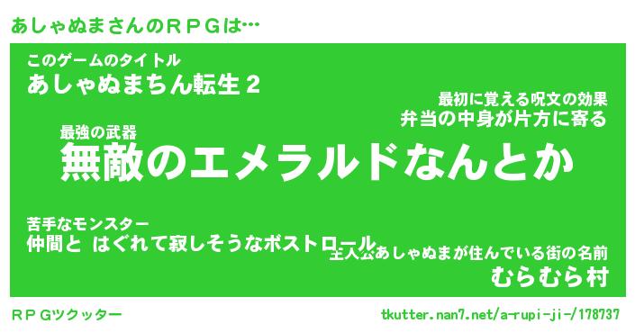 | 男性向けラノベタイトル風あだ名 | 『アシャヌマアートオンライン』 |