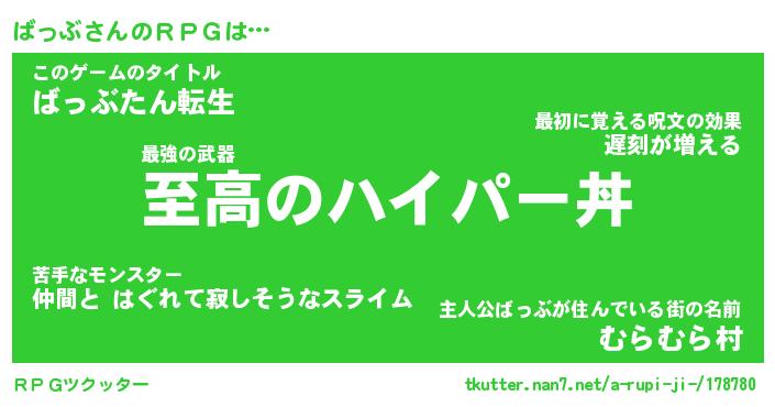 | 料理風あだ名 | 『節約★ばっぶと油揚げの玉子丼』 |